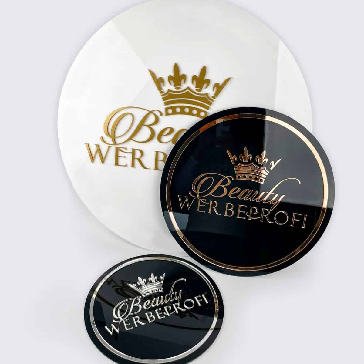 Glamouröses Acrylschild / Wandschild / Wandlogo bis zu 1,50m rund