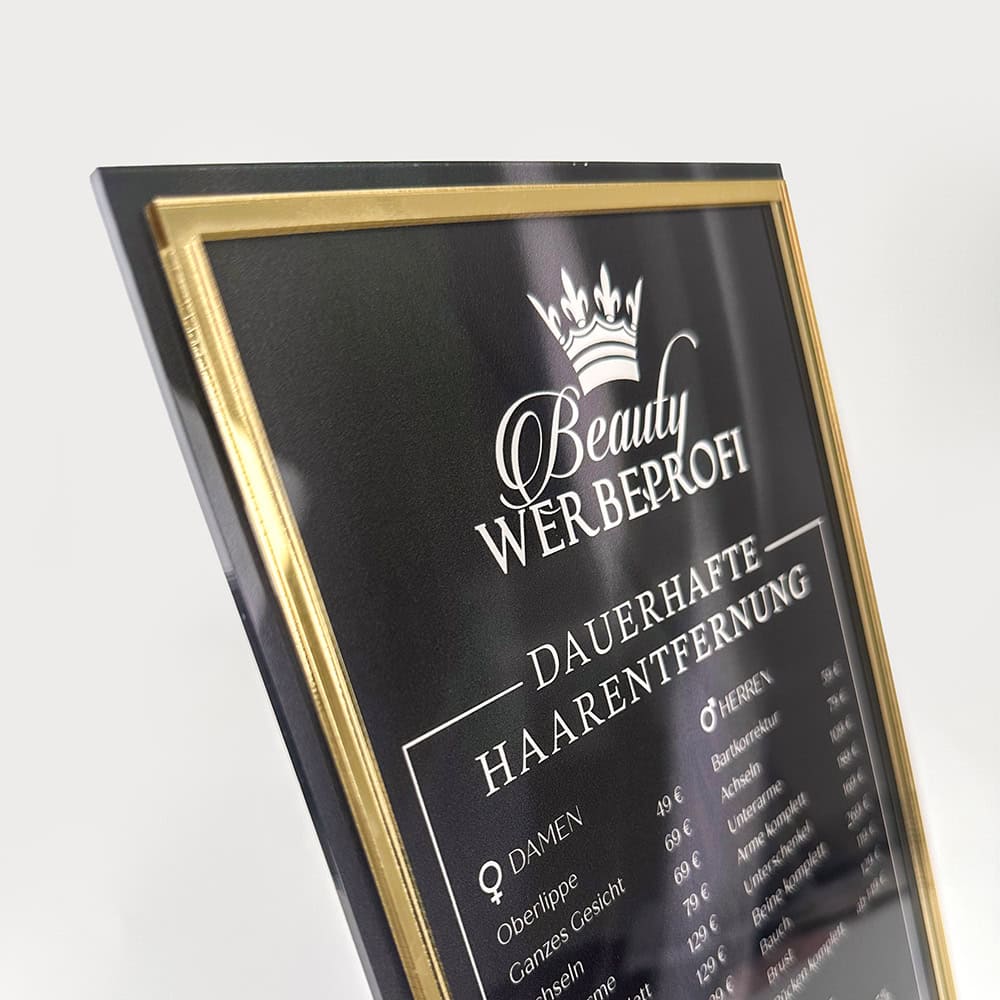 Du bist auf der Suche nach dem besonderen Etwas und gerade die Innenausstattung deines Studios oder Salons ist dir immens wichtig. Du möchtest auch keine 08/15-Tapete oder einen gewöhnlichen Anstrich nutzen. Nein, dir gefällt das Exklusive, das Elegante und das, was ins Auge sticht. Von deinem individuellen Beautylogo bist du sowieso schon begeistert, denn es strahlt Seriosität und Erfolg aus. Zeige, was du bereits geschafft hast, und entscheide dich in deinem Kosmetikstudio für in extravagantes Acrylschild in deinem individuellen Design.