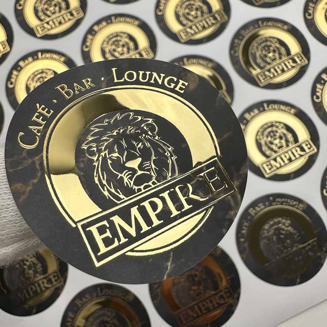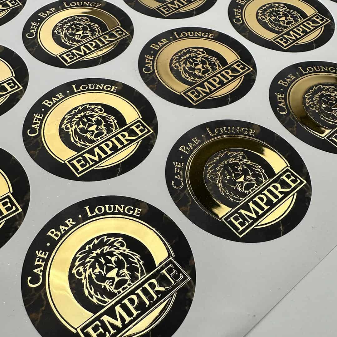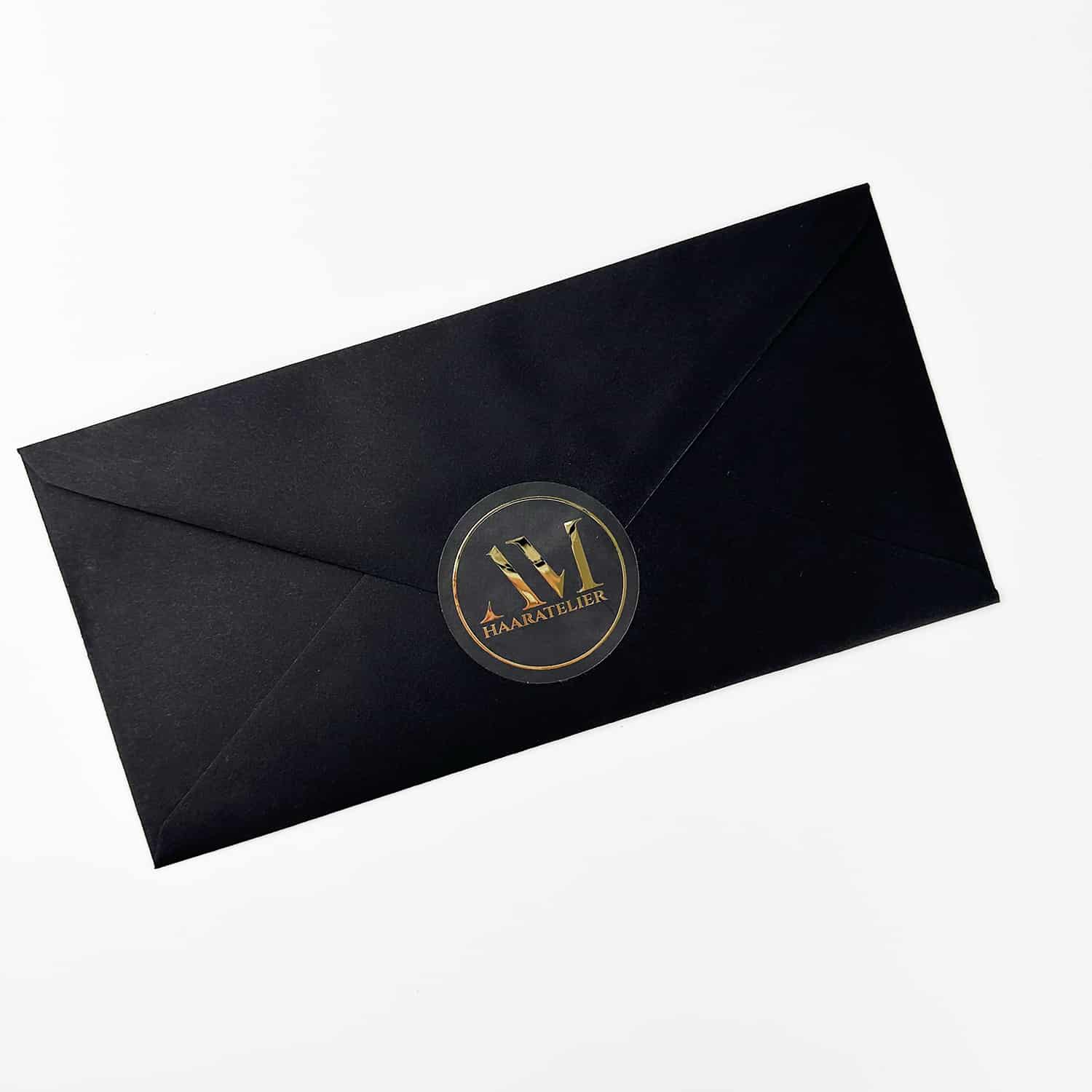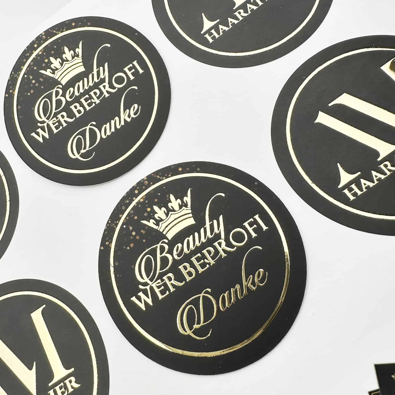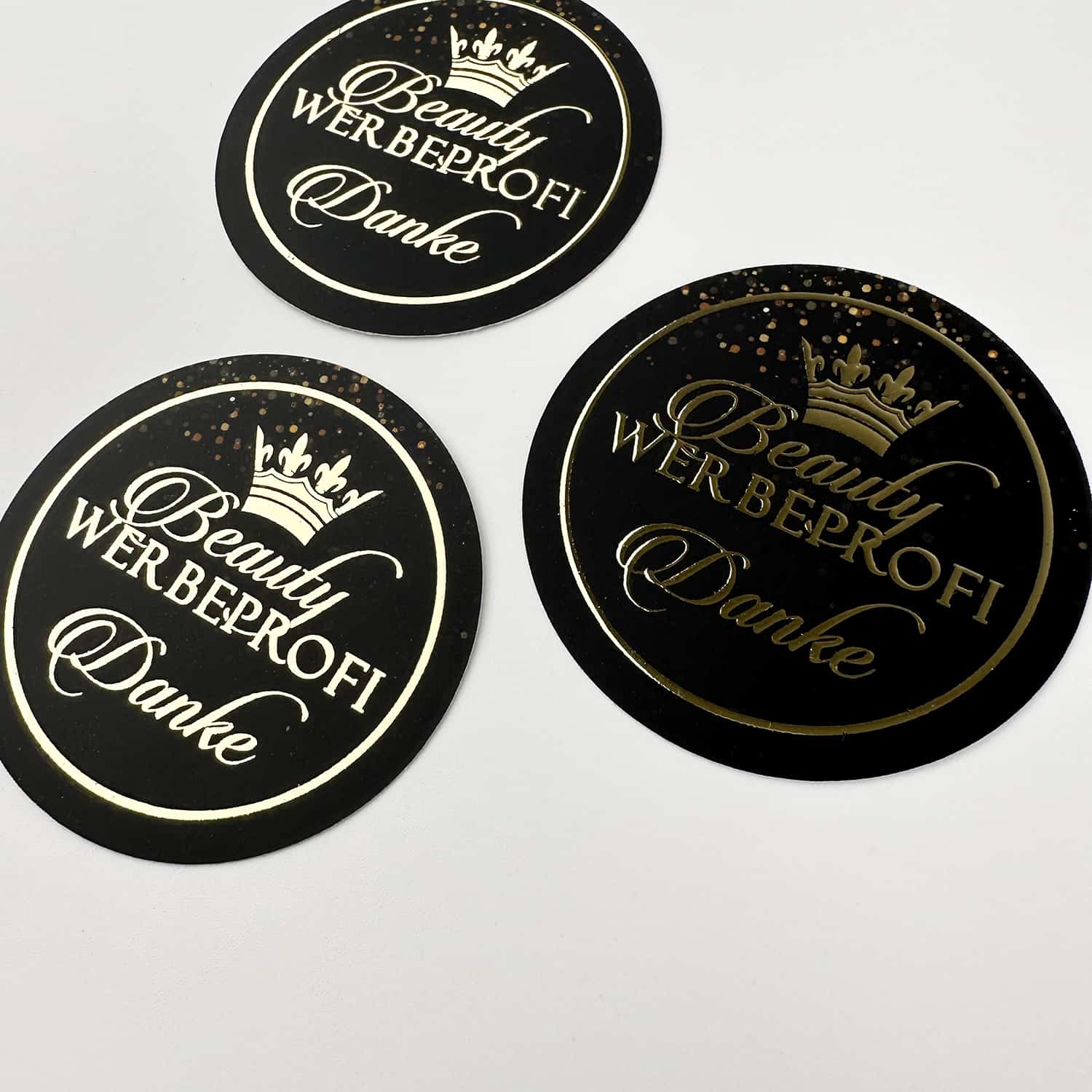 Aufkleber in deinem individuellen und luxuriösen Design – VEREDELUNG MIT HOCHGLANZ GOLD – ideal für Pakete, Gutscheine, Produkte oder Einladungen oder Danksagungen.