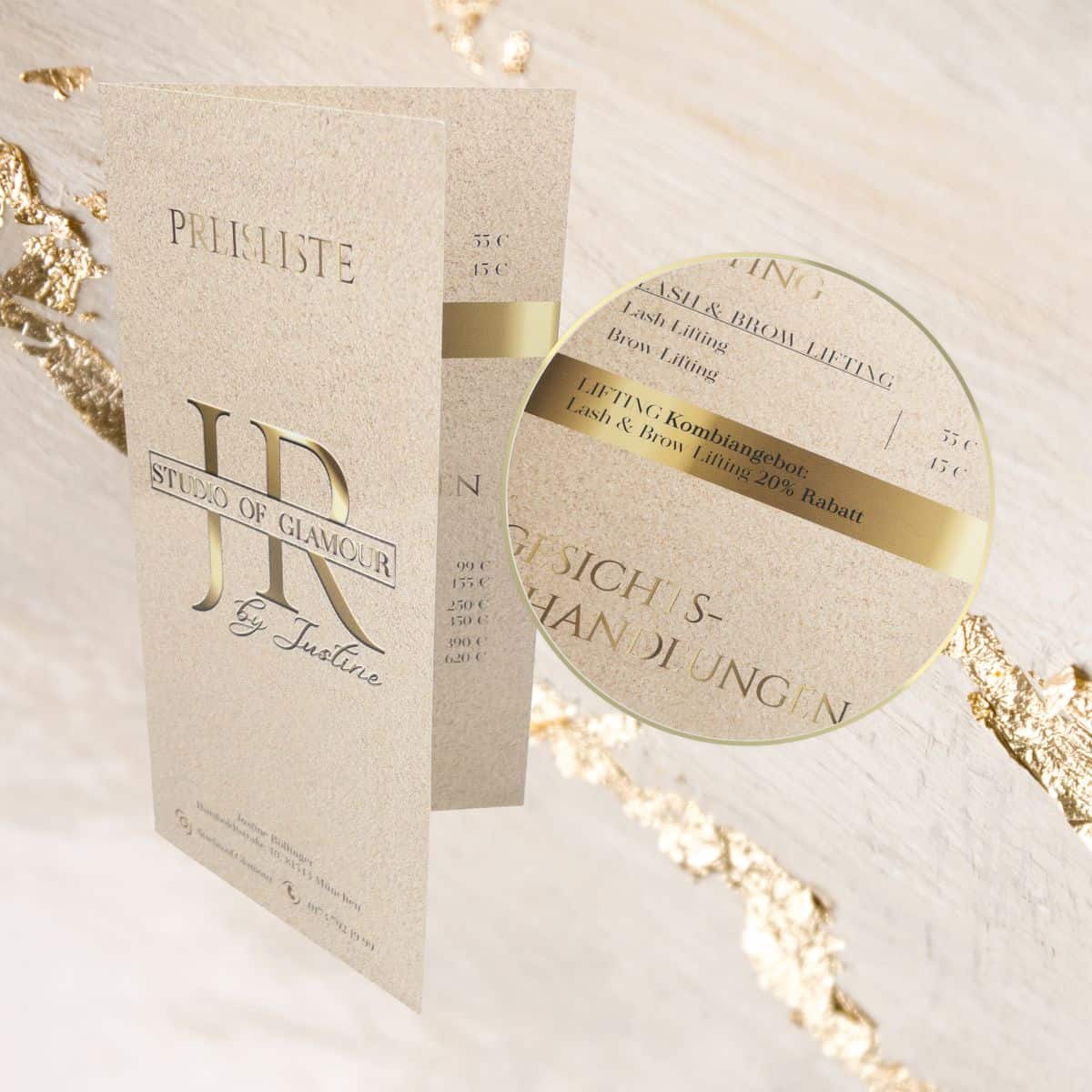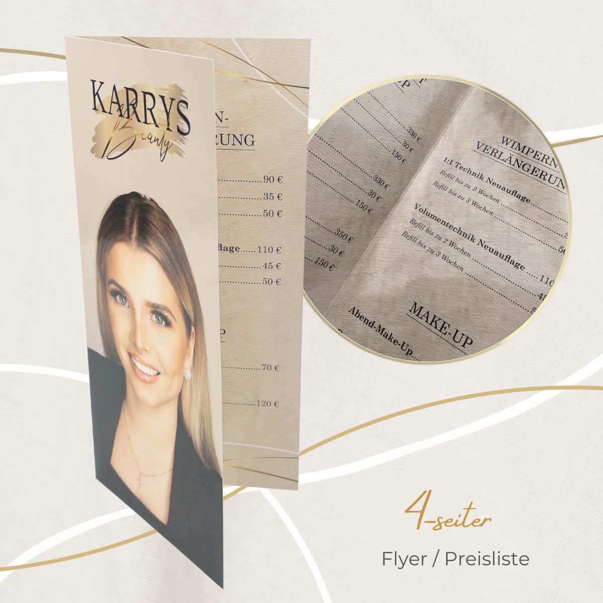Mit unseren glamourösen Hochglanzflyern erstrahlt dein Wimpernstudio gleich doppelt! Auch gibt es hier genügend Platz, um Beispiele deiner Künste aus deinem Tattoostudio zu präsentieren.