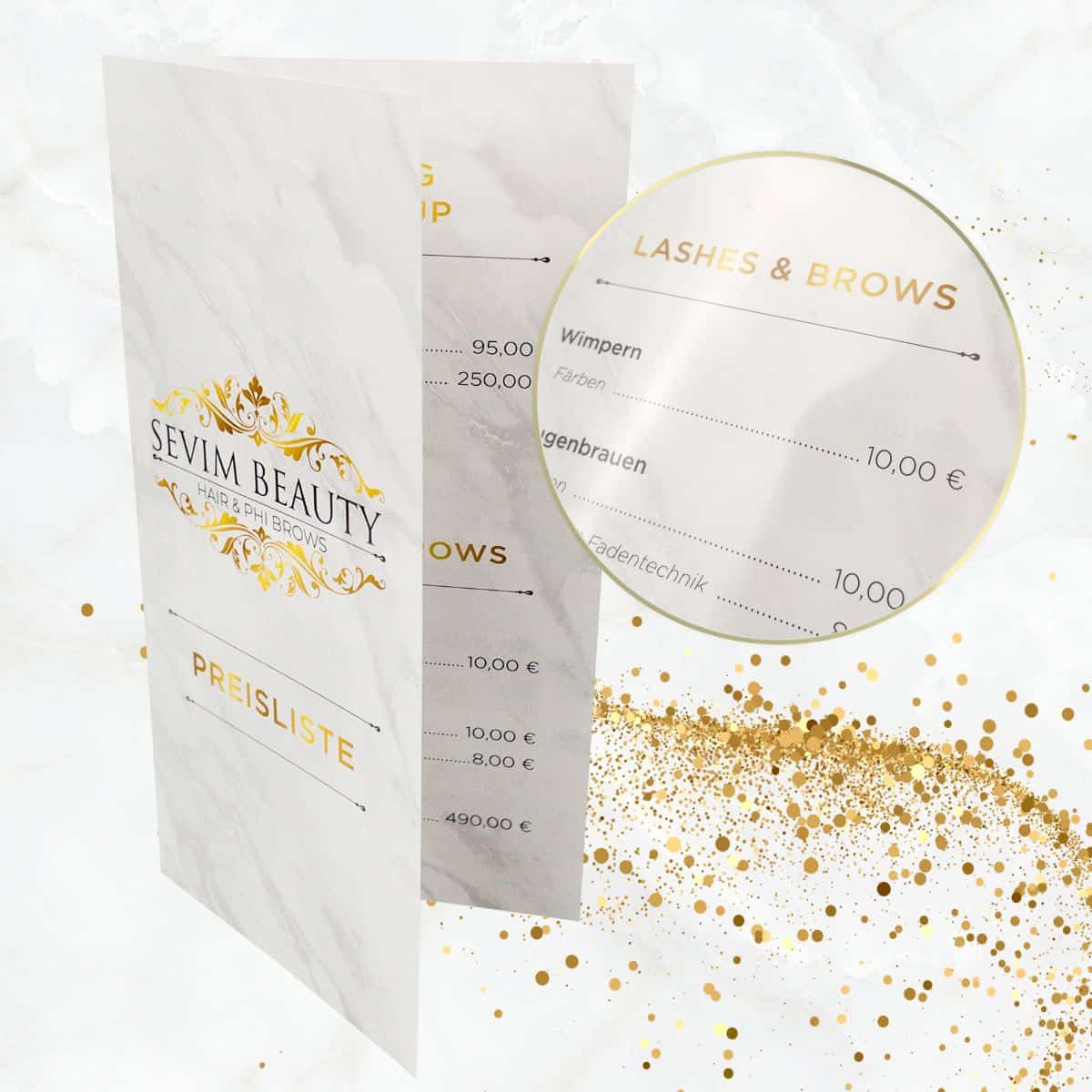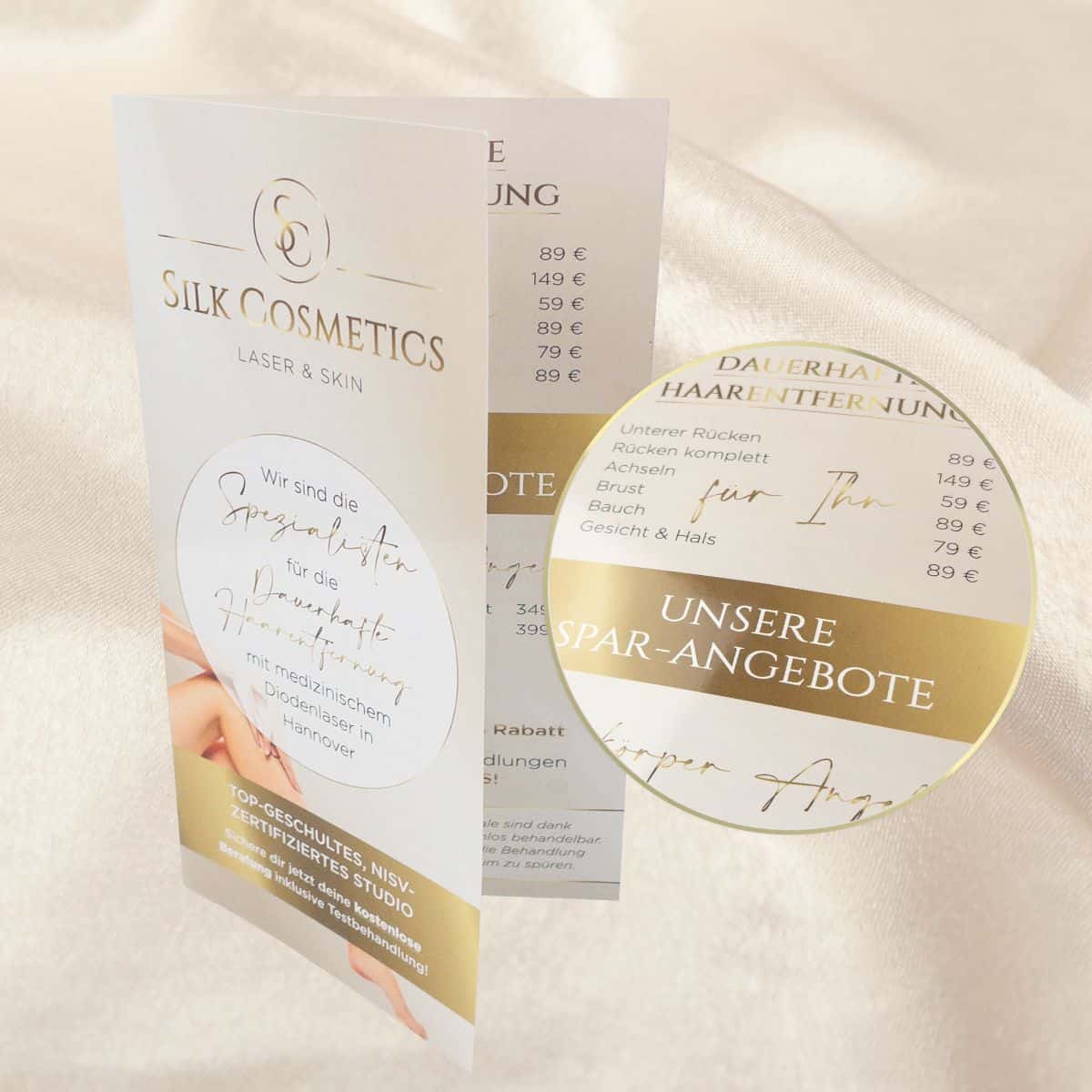 - Infoflyer/Preisliste in DINlang Format mit eleganter Falzkante