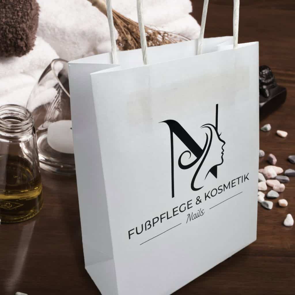 - Qualitativ hochwertige Tragetasche aus Kraftpapier in deinem individuellen Studiodesign in der Größe 18×22,5x8cm