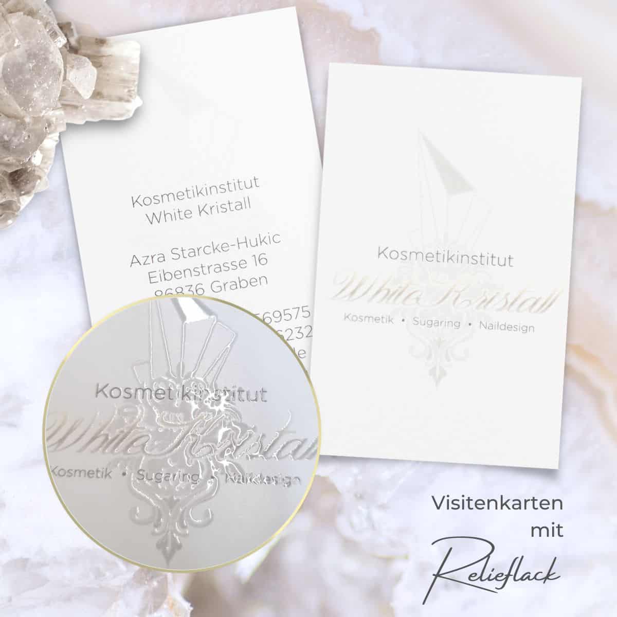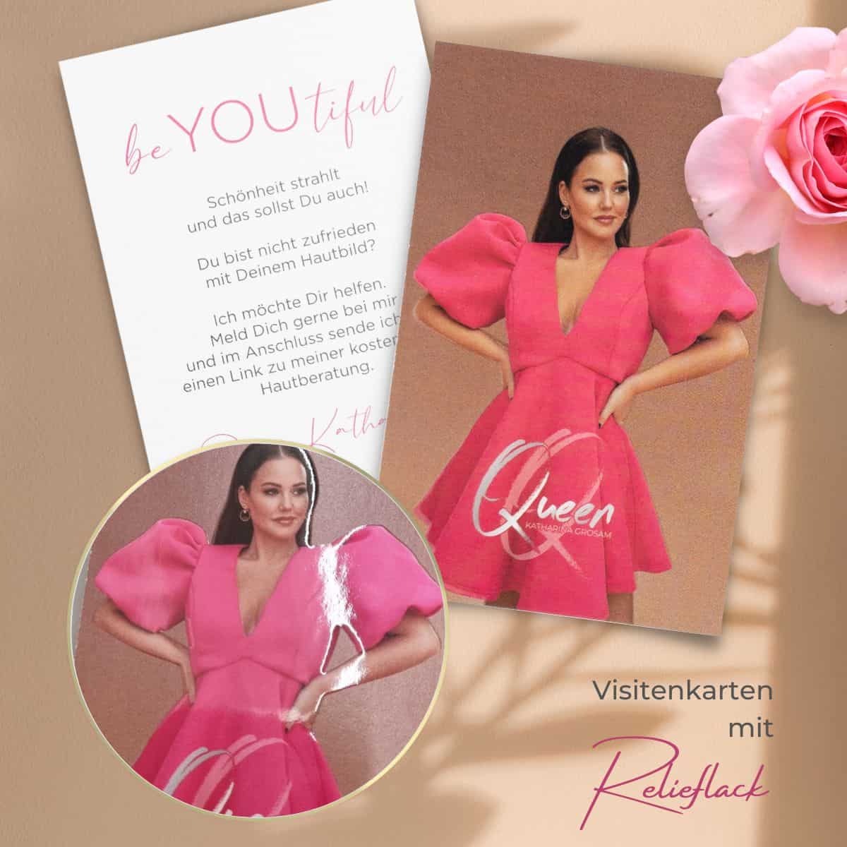 - Individuell erstellte Visitenkarte ist beidseitig bedruckt und durch die Lack-Veredelung auf der Vorderseite besonders edel