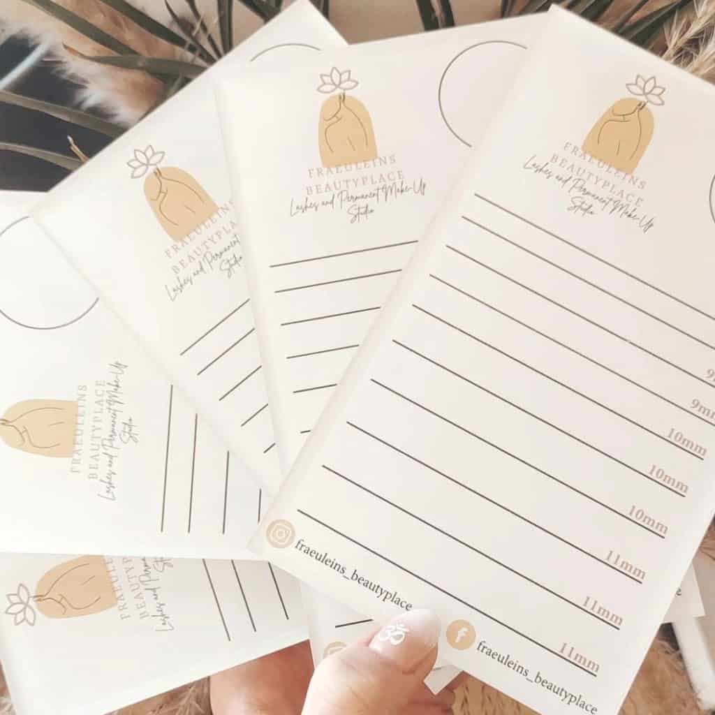 Somit spart dieses hochwertige Wimpernplatte auch noch Zeit bei der Vorbereitung der Wimpernverlängerung. Der besondere Clou in diesem Fall ist das Aussehen der praktischen Platte: sie ist einmal in deinem individuellen Studiodesign erstellt!